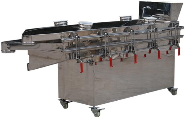 直線振動(dòng)篩是利用振動(dòng)電機(jī)激振作為振動(dòng)動(dòng)力來源,使物料在篩網(wǎng)上被拋起,同時(shí)向前作直線運(yùn)動(dòng),當(dāng)物料從給料機(jī)均勻地進(jìn)入篩分機(jī)的進(jìn)料口時(shí),物料會(huì)通過多層篩網(wǎng)產(chǎn)生數(shù)種規(guī)格的篩上物、篩下物、分別從各自的出口排出。直線振動(dòng)篩具有耗能低、產(chǎn)量高、結(jié)構(gòu)簡(jiǎn)單、易維修粉塵溢出,自動(dòng)排料,更加合適廠家流水線作業(yè)。因此被廣泛用于礦山、需精工征集裝配及無負(fù)載試車振動(dòng),煤炭、冶煉、建材、耐火材料、輕工、化工等行業(yè)中的粉狀、顆粒狀物料的篩選和分級(jí),被廣泛應(yīng)用.